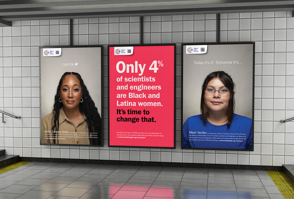 It’s a sobering fact: only 4% of today’s female workforce in science and engineering vocations are of Black or Latina roots. There are countless numbers of young, ambitious girls who dream of being engineers and scientists, but don’t get a chance to pursue their passions due to economic or geographic circumstances. STEM programs are the beating heart of Science Club for Girls and their program that fosters excitement, confidence and literacy in science, technology, engineering and math for youth in underrepresented communities. This campaign provided a clean, clear sophisticated presence and message for an organization that previously had difficulty reaching a broader audience. Elevating the featured women and girls to an understated yet heroic level was the objective. Via intimate storytelling and direct, compelling visuals, the heart and determination of the SCFG organization broke through. A rewarding assignment from an inspiring client.