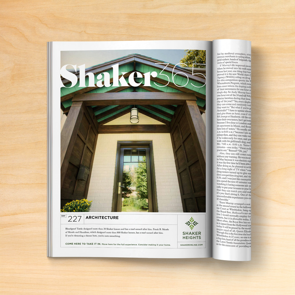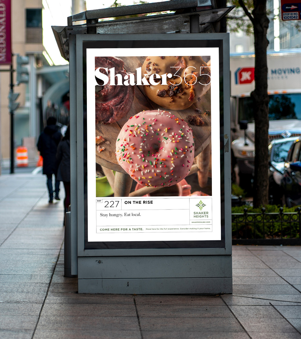 Shaker Heights, Ohio wanted to create greater awareness of the serene majesty, heritage and cultural relevance of their city. Together with the formidable shark&minnow agency, we created a branding and promotional campaign that informed the public of its unique offerings one day at a time, for an entire year. In conjunction with the revitalization of its reimagined Downtown district, the city used these daily glimpses into Shaker Heights life as a means to attract new residents and to retain the existing.